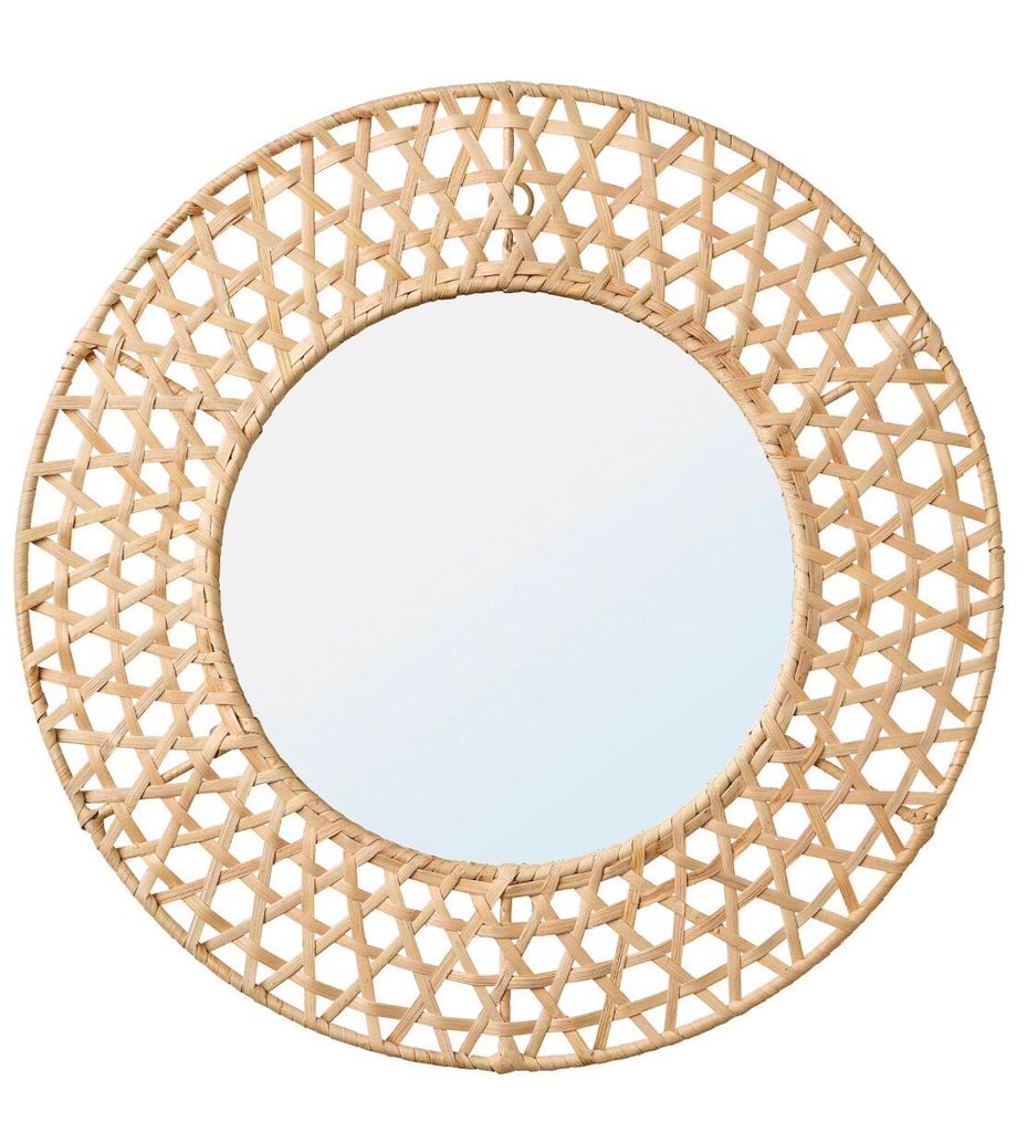 Gương treo tường đươc làm bằng khung sắt kết hợp các mắt mây được đan thủ công tạo nên các đường nét hoa văn độc đáo.